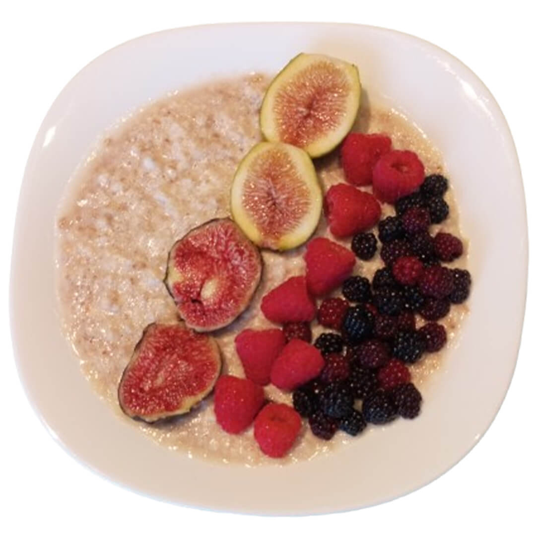 Nesta receita decorei o mingau com figos, framboesas e amoras.